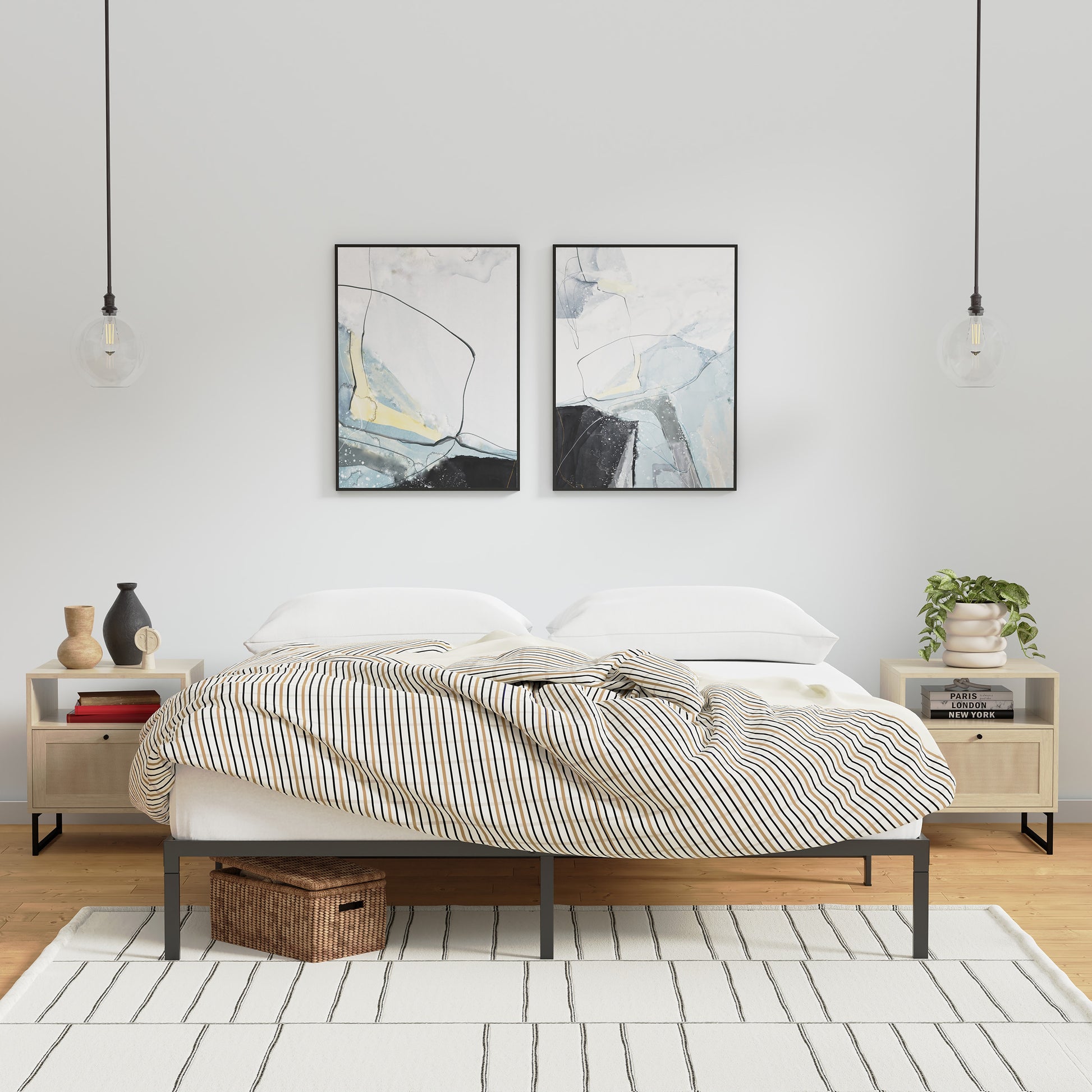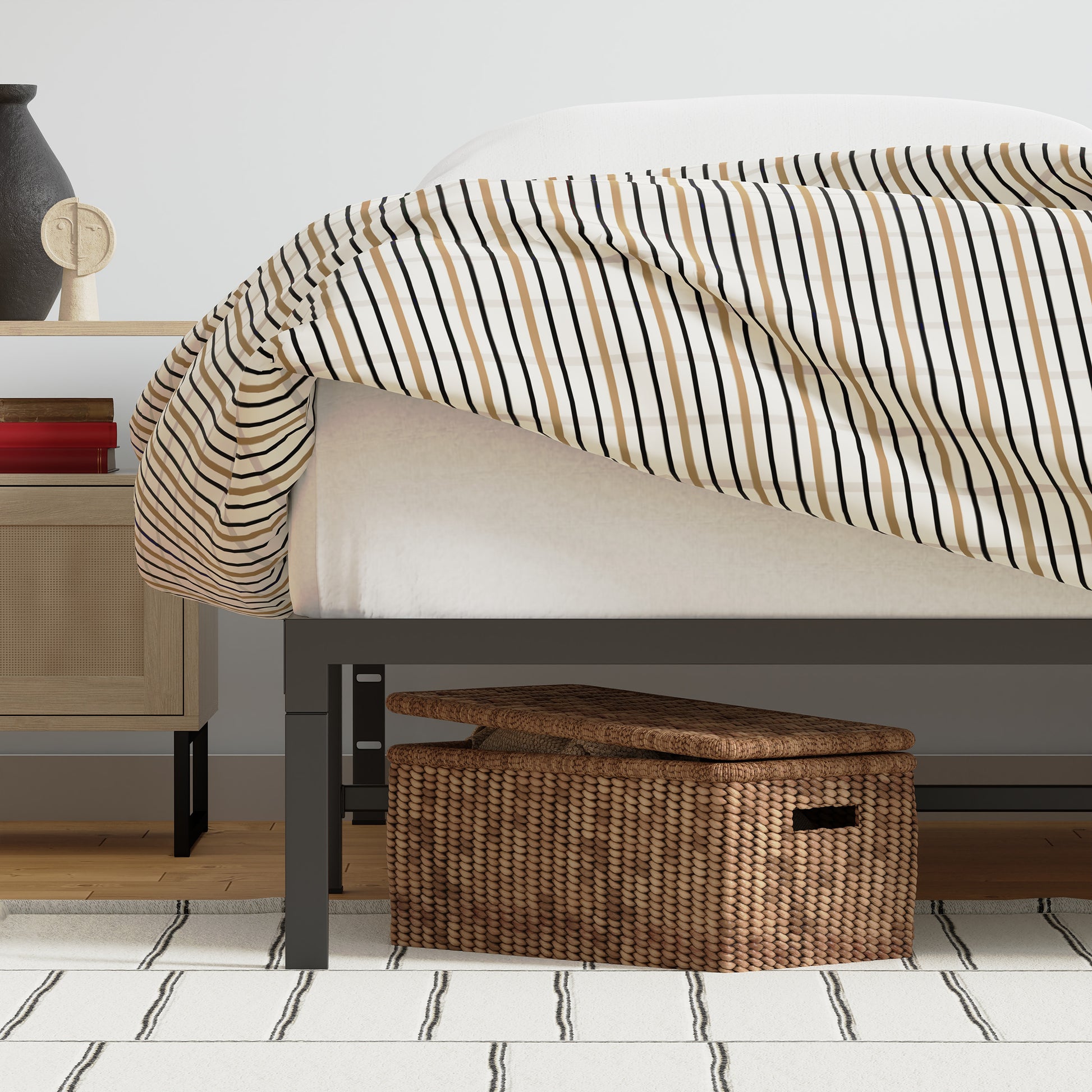 Our upgraded Deluxe Platform Base foundation looks great and is quick to assemble! This Deluxe Platform Base has been crafted to provide a modern, sophisticated look for any mattress without the need for a box spring. With a base height of 16", there is plenty of storage space underneath. The matte black finish gives it a clean look for any bedroom.